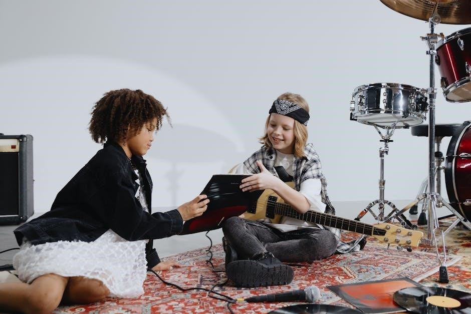 Setting clear, achievable goals is essential for consistent improvement․ Start with short-term objectives, like mastering a basic rhythm or increasing practice time․ Track your progress with a practice log or app to monitor development․ Celebrate milestones to stay motivated and adjust goals as you advance․ Regularly review your progress, identifying strengths and areas for improvement․ Using a metronome can help measure timing accuracy over time․ Record your sessions to hear your growth and refine techniques․ Stay patient and consistent, as drumming is a skill that takes time to master․ By setting realistic expectations and tracking your journey, you’ll stay inspired and committed to becoming a skilled drummer․